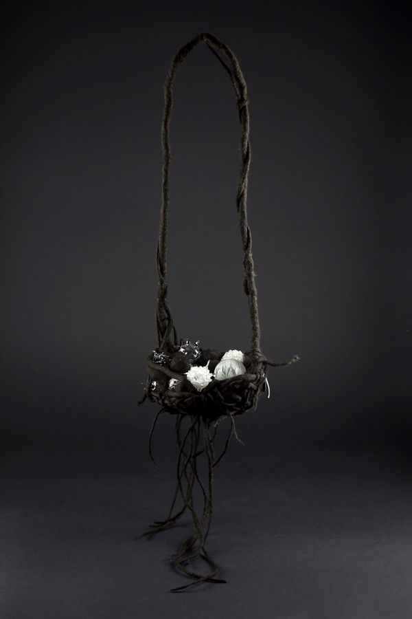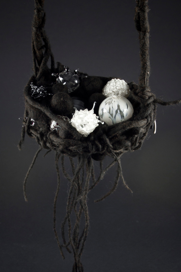 Nido: Huevos de cristal de murano soplado. Nido confeccionado por Lanas de Misiones.